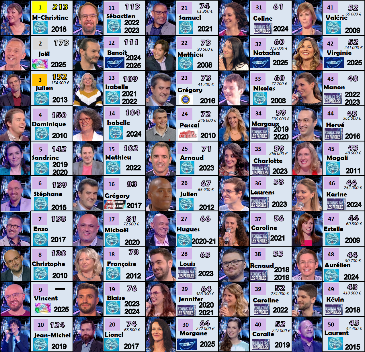 En intégrant les vainqueurs de France 2 et France 3, quels sont les records de durée victorieuse consécutive dans les jeux télévisés ?