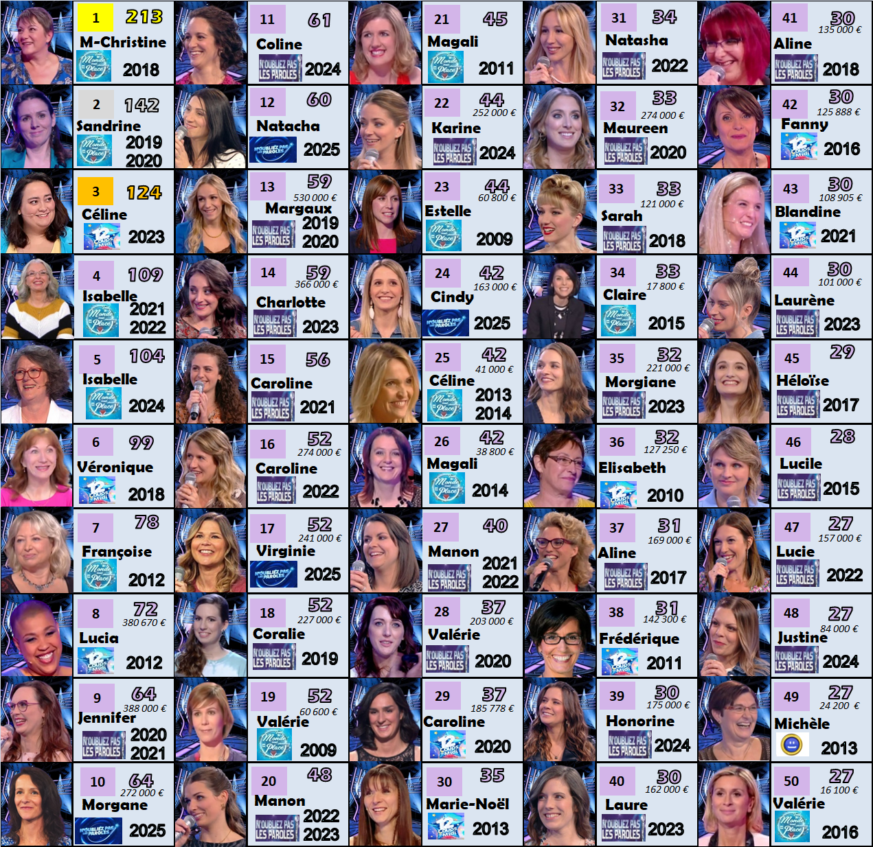 Elles ont dominé leur jeu, épisode après épisode. Qui sont les reines du petit écran ? Découvrez les 50 femmes les plus victorieuses de la télévision française !