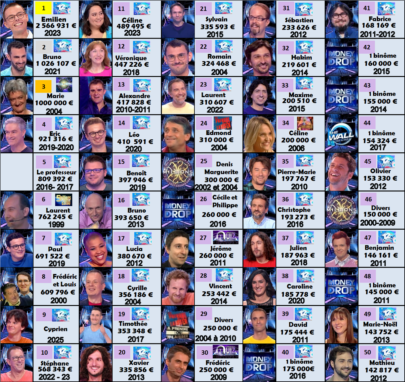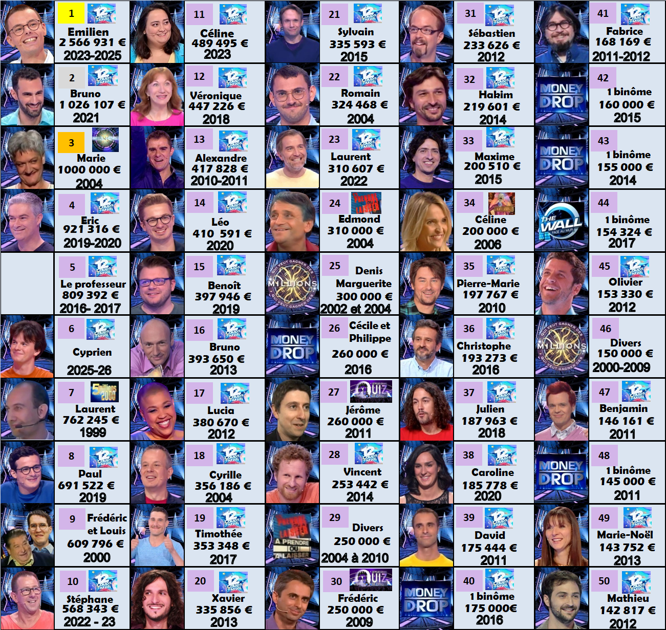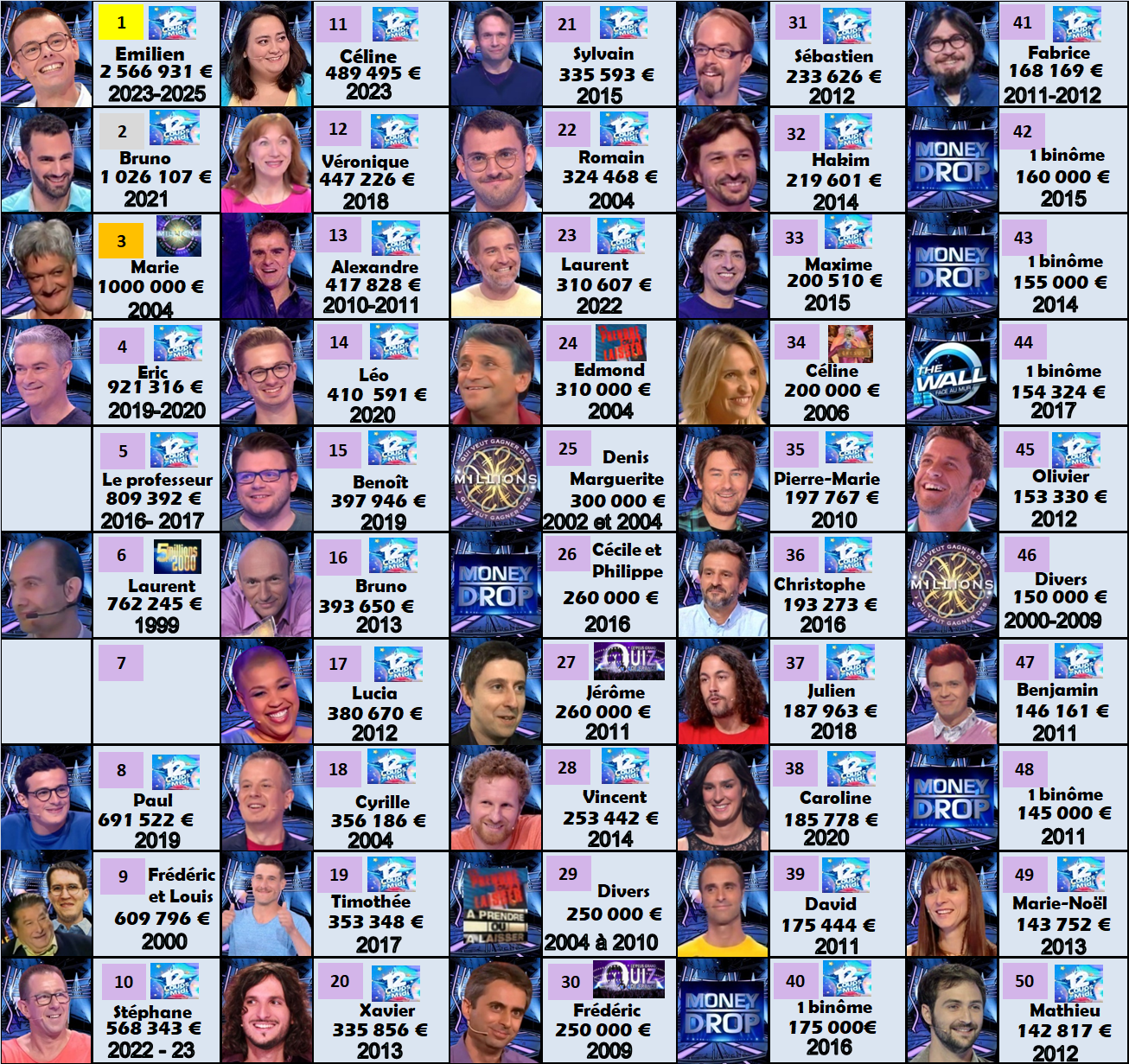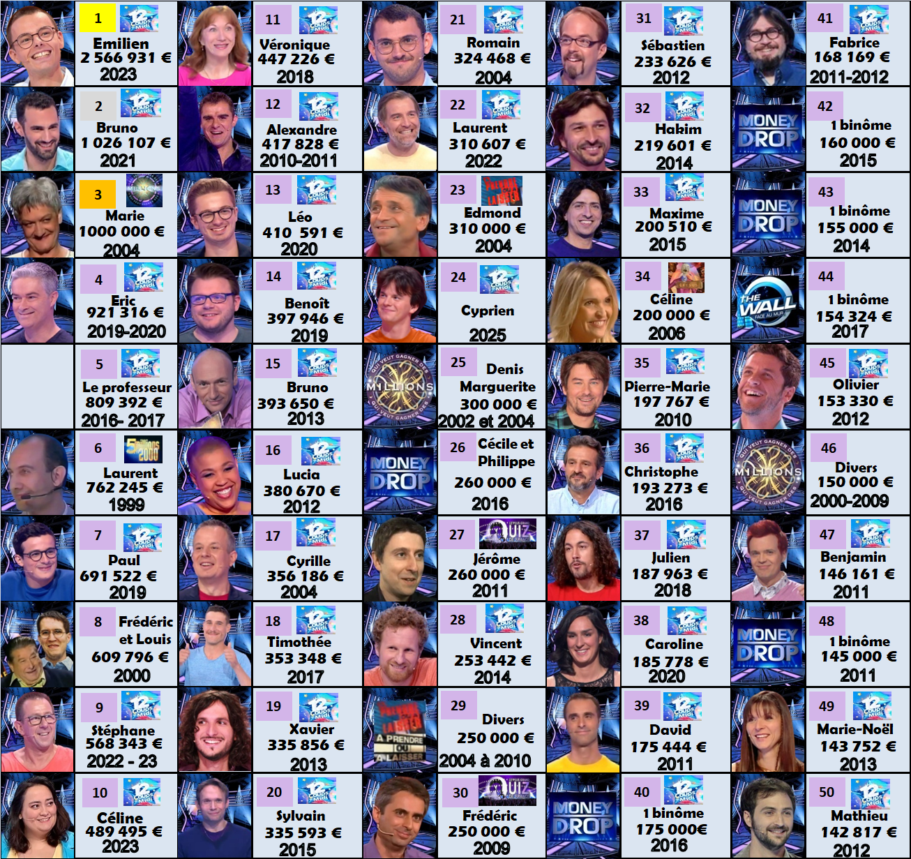 Voici le panel des 50 plus gros gains remportés dans un jeu diffusé sur TF1 !